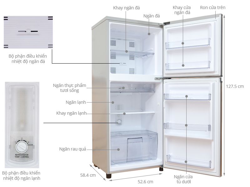 Kiểu tủ:Ngăn đá trên